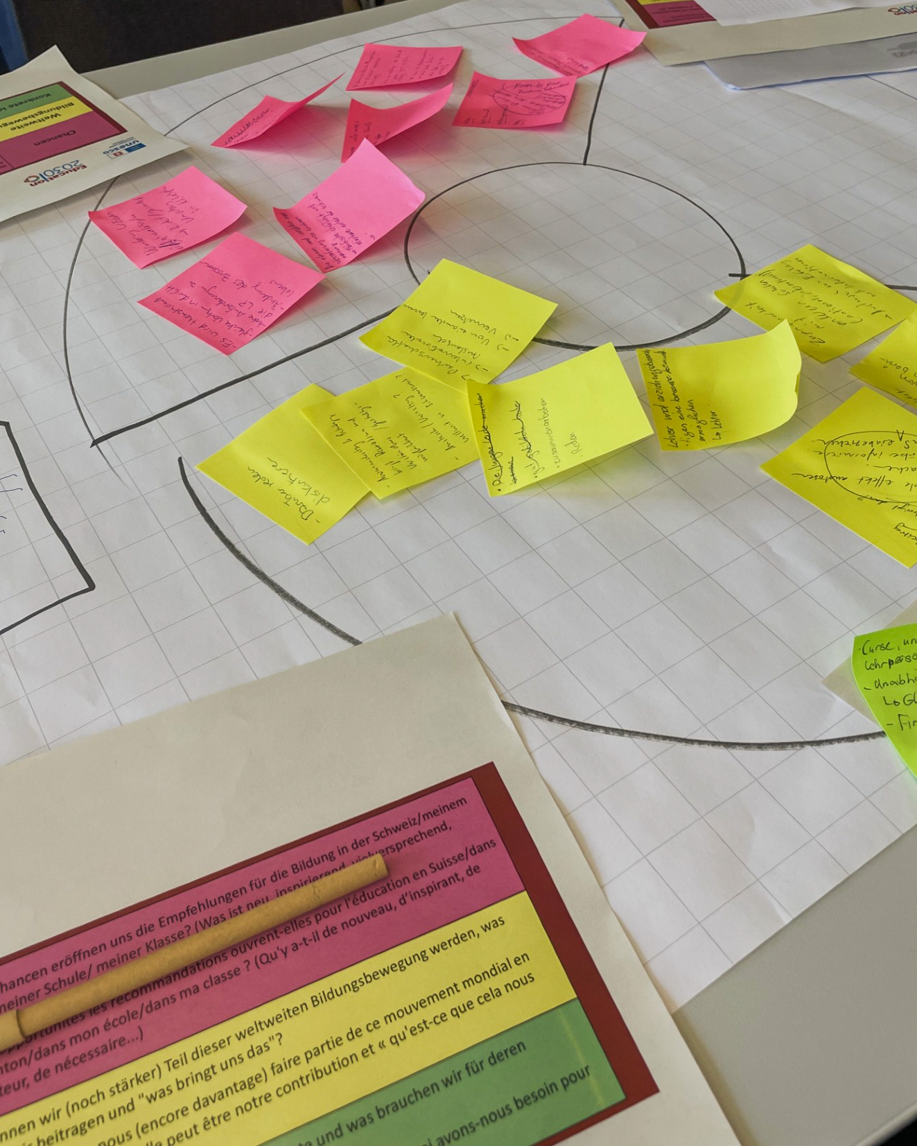 In einer Gruppenarbeit erarbeiteten die Schülerinnen und Schüler Gedanken zu den Themen Chancen weltweiter Bildungsbewegungen, die anschliessend zusammengetragen wurden.